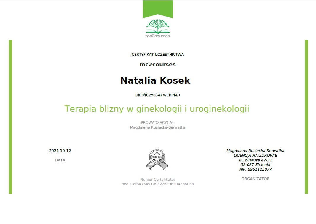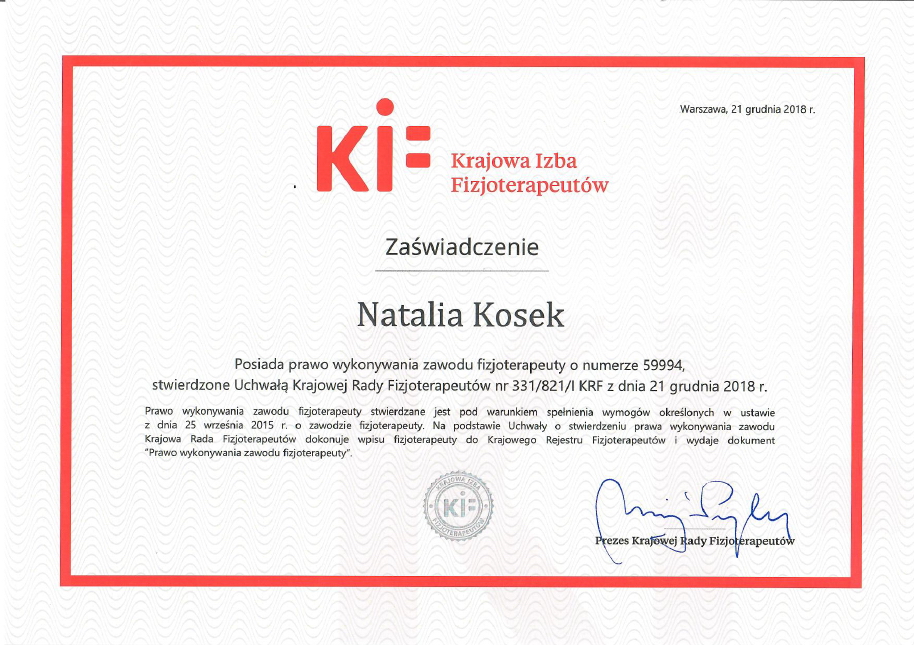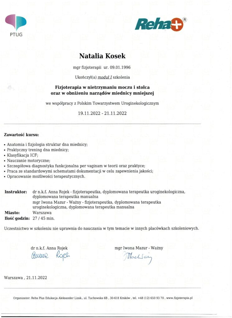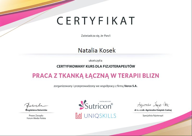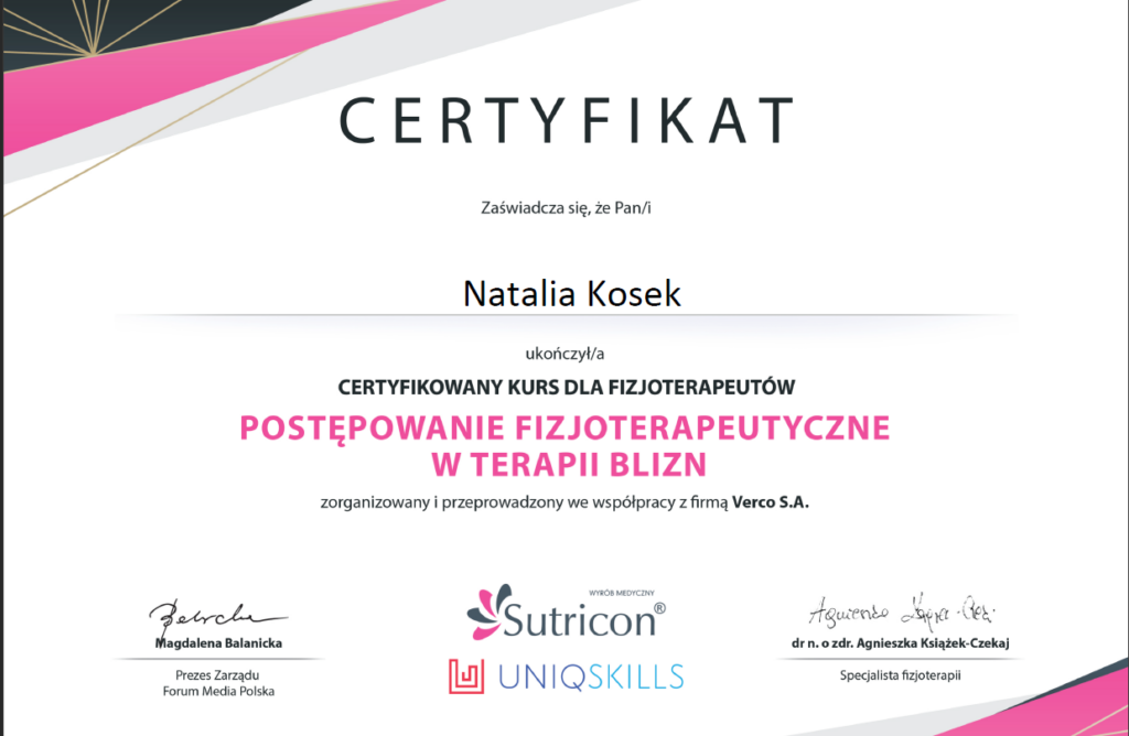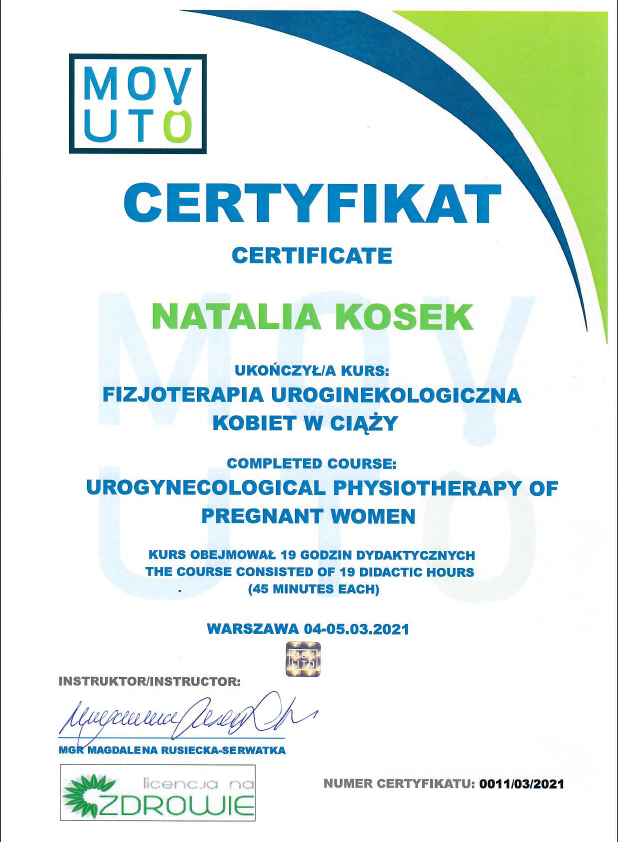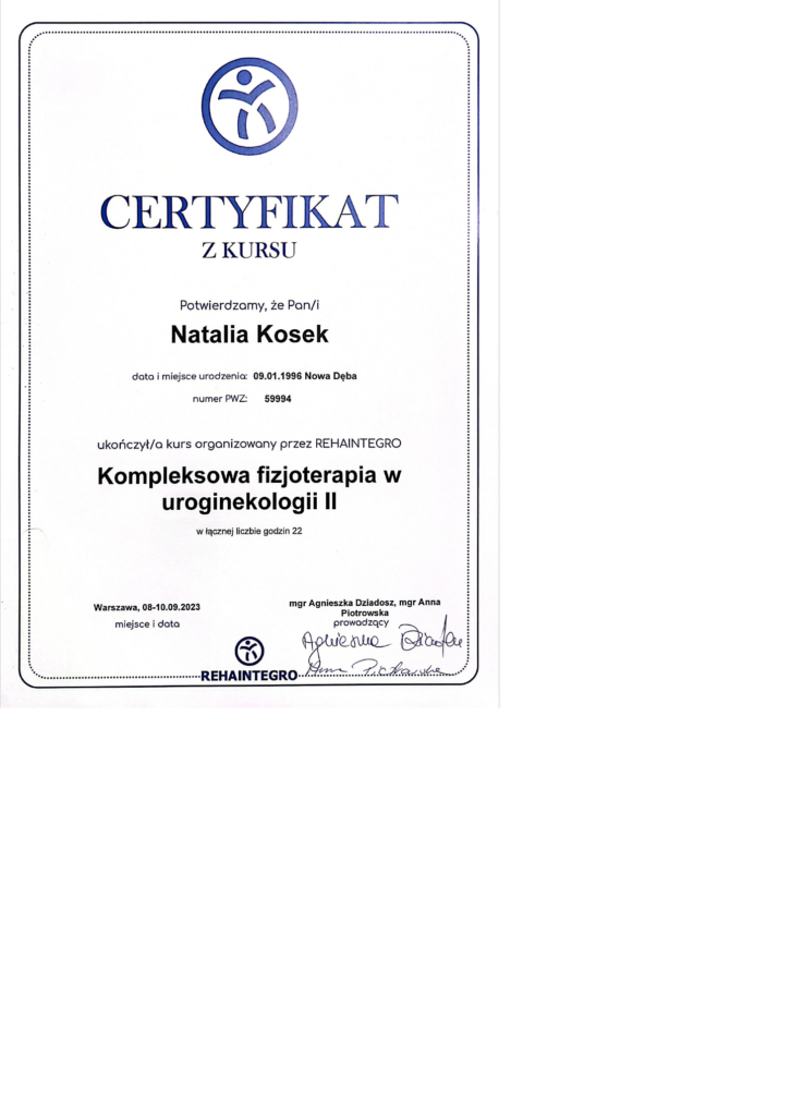 Certyfikowana fizjoterapeutka uroginekologiczna.