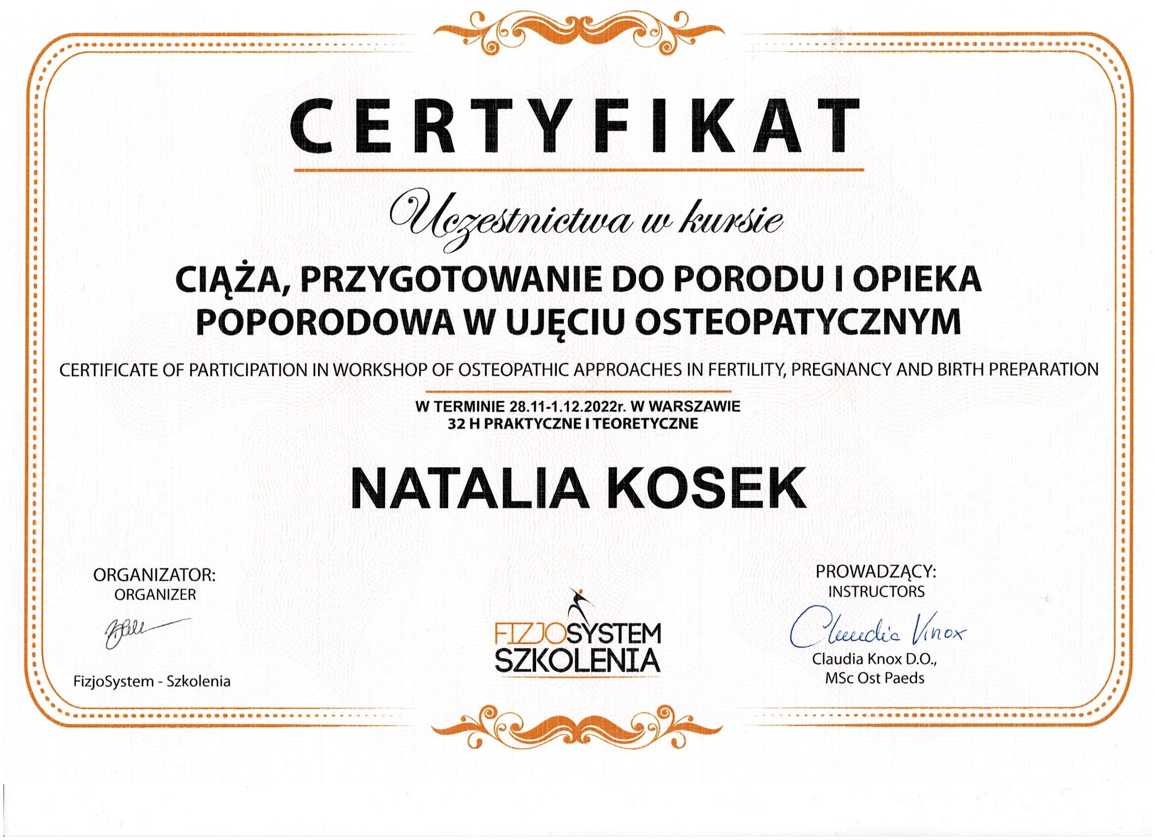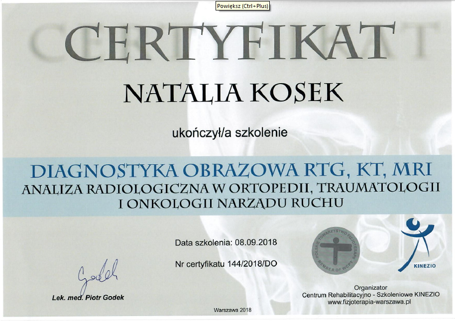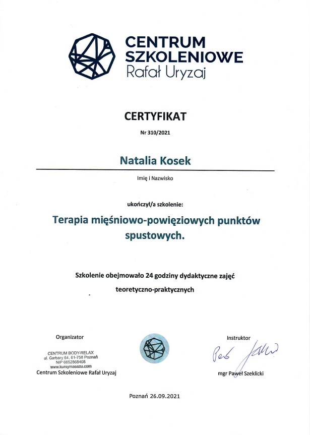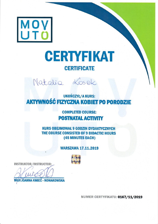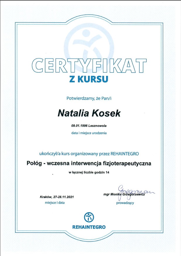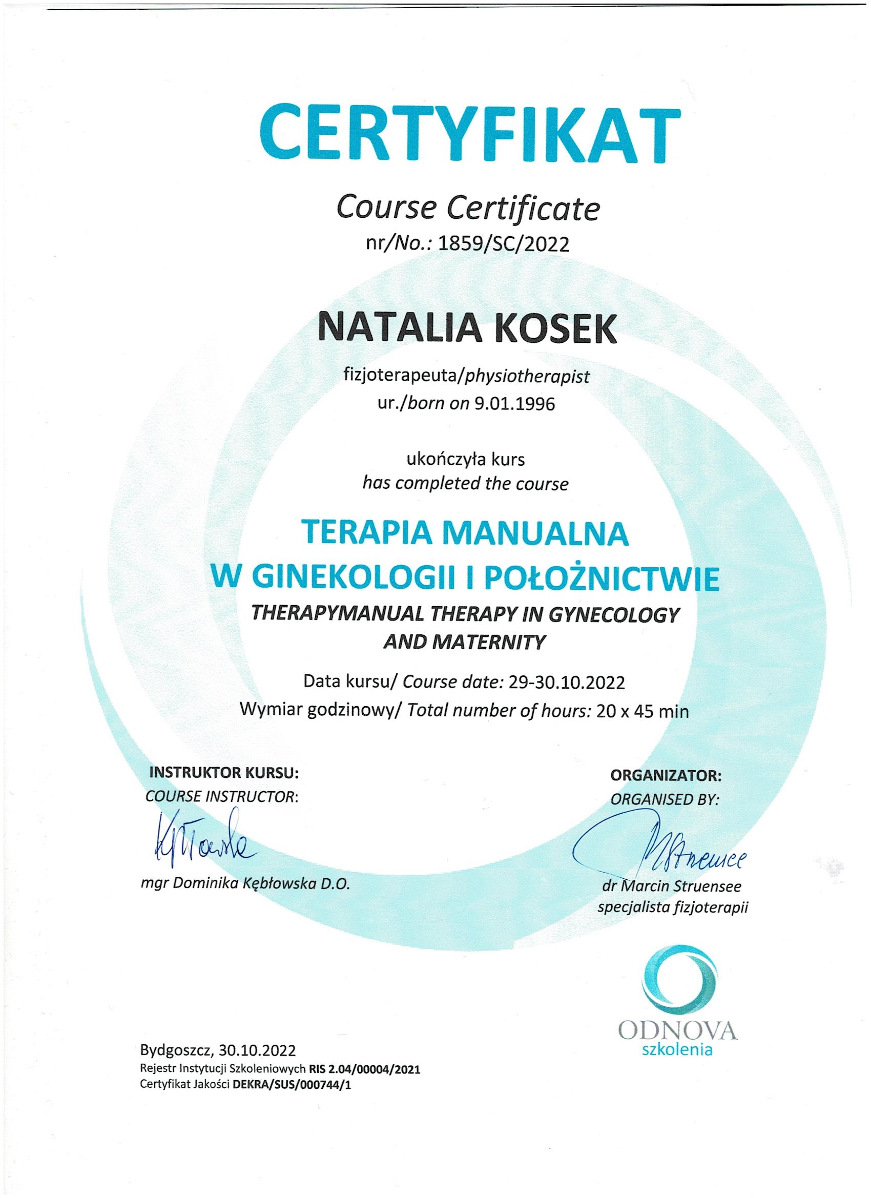 Certyfikowana fizjoterapeutka uroginekologiczna.