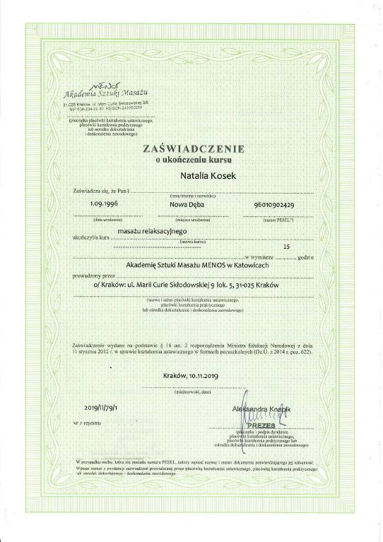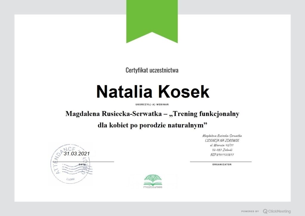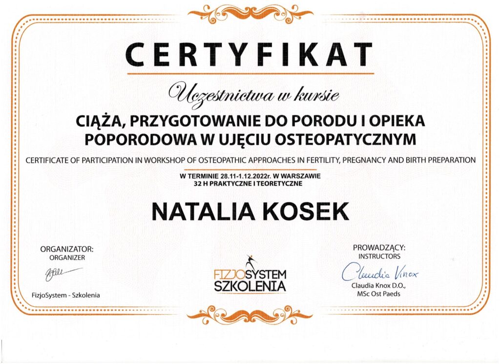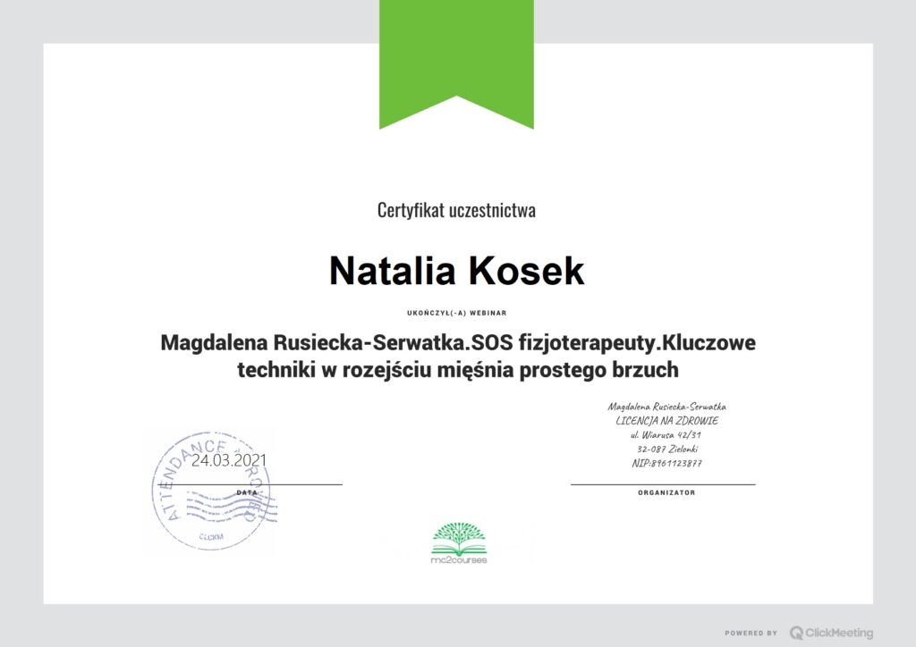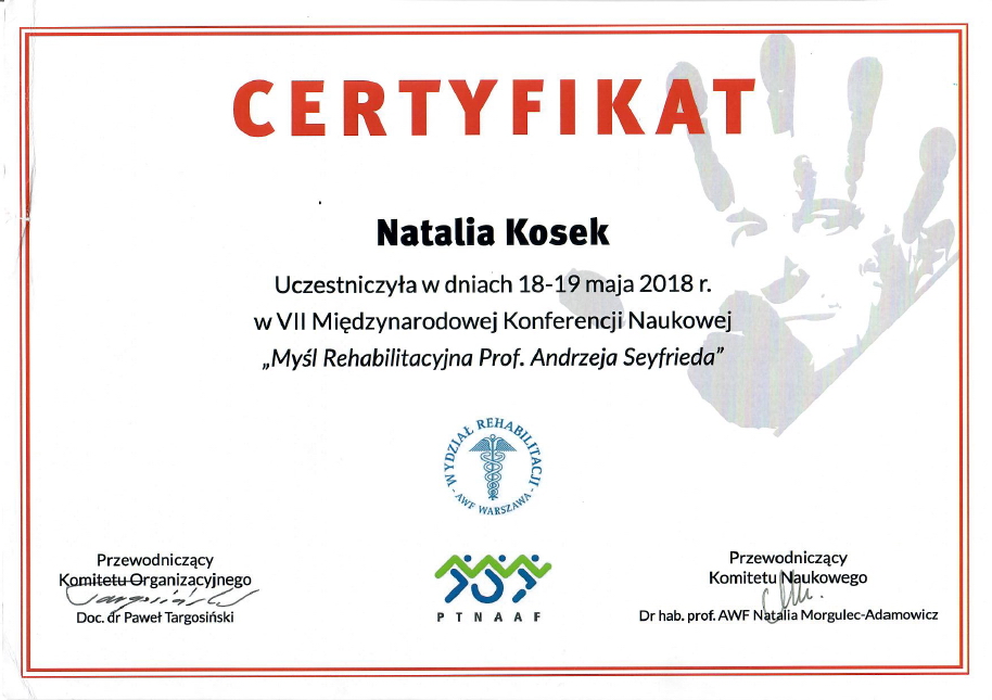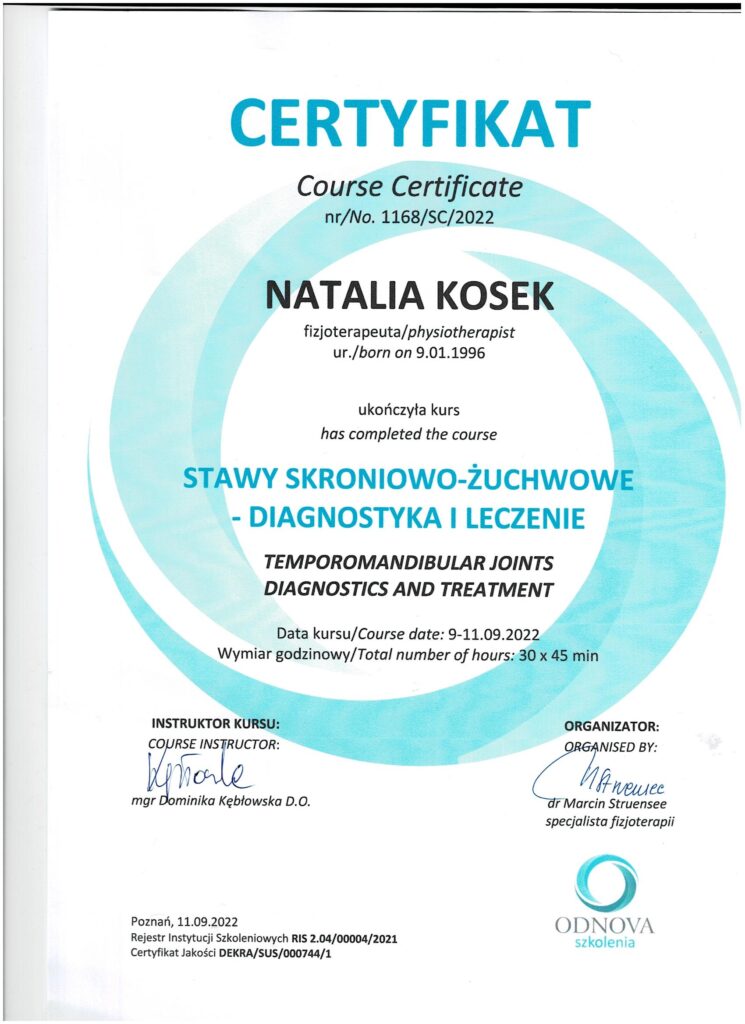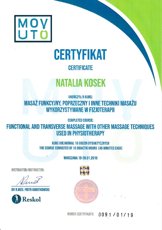Certyfikowana fizjoterapeutka uroginekologiczna.